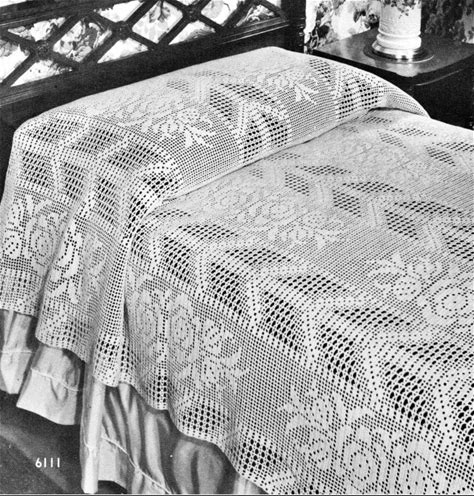 Vintage Filet Crochet Bedspread Pattern: Bed Of Roses (PDF Pattern)