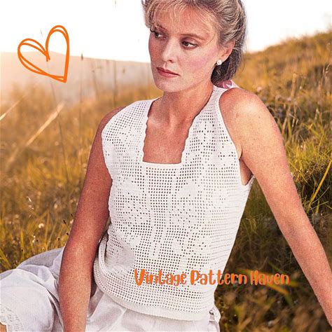 Vintage Crochet Filet Pattern Crochet Top With Roses PDF Instant Digital White Mod Download Camisole With Roses
