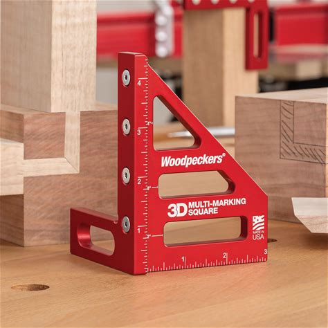 Woodpeckers 3D Multi-Marking Square, Inch Version, USA Made, Feature Packed Aluminum Woodworking Square For Layout, Joinery, Assembly Check