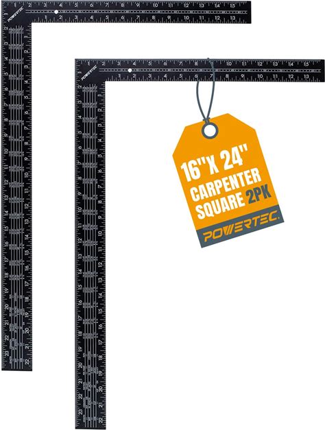 POWERTEC Framing Square, 16'' X 24'' Carpenter Square With Rafter Tables, Woodworking Square For Carpenter, Stair Gauges, Construction, Woodworking,