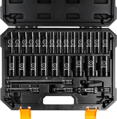 Boen 8mm-32mm 1/2" Drive Metric Socket Set, Impact Deep Socket, 6 Point Lug Nut Socket For Auto Repair With Portable Case, CR-V Steel, 29PCS