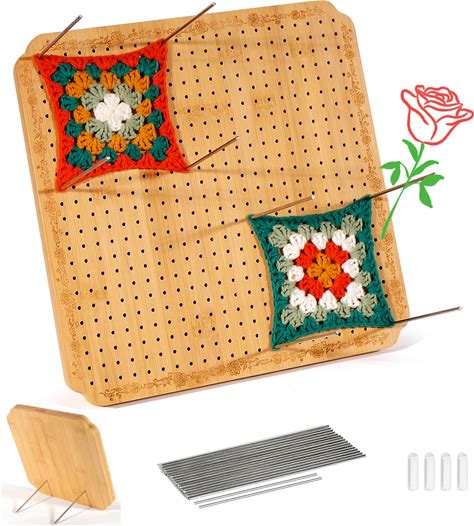 Craftymanor 12.5 in Blocking Boards For Crochet Projects With Rose Pattern, Crochet Blocking Board With Pegs, Granny Square Blocking Board With 20