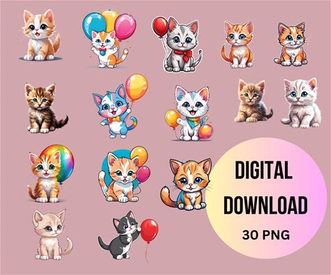 Cute Cat Clipart Bundle | 20 PNG Cartoon Kitten Graphics | Digital Download | Digital Stickers