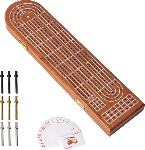 GSE™ 4-Track Wooden Folding Cribbage Board With Playing Card, 12 Metal Pegs And Storage Area - Brown
