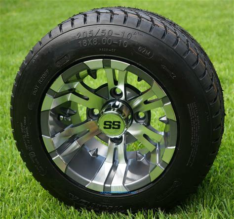 10" Vampire Gunmetal Golf Cart Wheels And 205/50-10 Dot Low Profile Tires Combo - Set Of 4 Steeleng