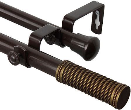 Rod Desyne Threaded 13/16" Adjustable Double Curtain Rod | Brown | One Size | Curtain Rods Double Curtain Rods | Adjustable | Presidents' Day