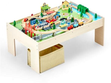 Infans Kids Wooden Train Table Set 84 PCS Playset W/ Reversible Tabletop Storage Drawer