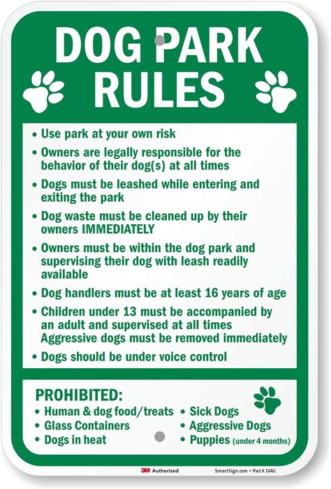 Smartsign 18 X 12 Inch "Dog Park Rules - Use At Your Own Risk, Owners Legally Responsible …" Metal Sign, 63 Mil Aluminum, 3m Laminated Engineer Grade