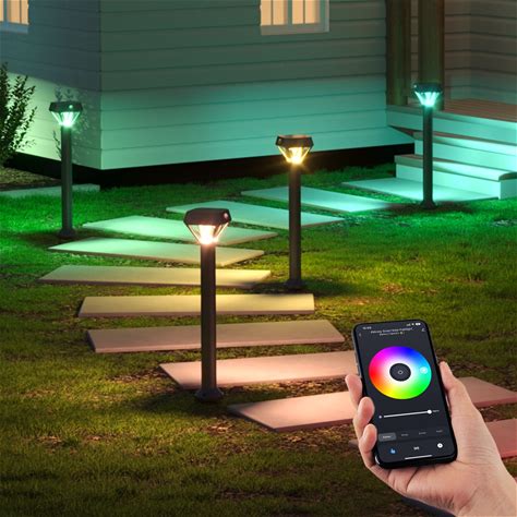 XMCOSY+ Smart Solar Pathway Lights, Bluetooth APP Control With Motion Sensor, 150LM RGBCW Color Changing Landscape Lighting For Yard, Garage, Garden,