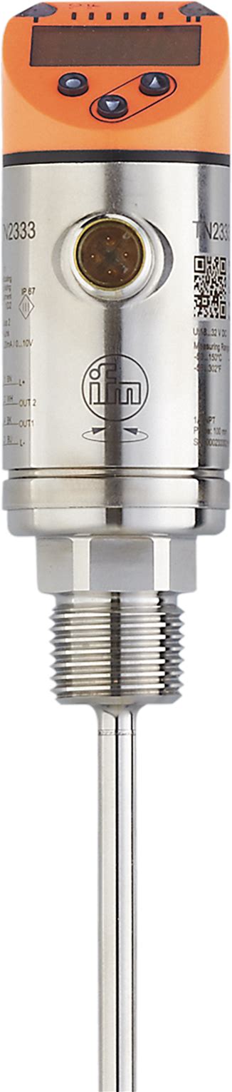 Ifm TN2333 Temperature Sensor With Display, Stainless Steel, IP67 And IP69K, IO-Link, Analog And Switching Output, 100 mm Probe, M12 Connector