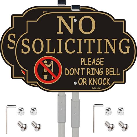 No Soliciting Sign For House With Stake 28" Tall | 12" X 8" Aluminum Metal Sign For Yard/Lawn, UV Protectedeasy To Install&Fade Resistance, Outdoor