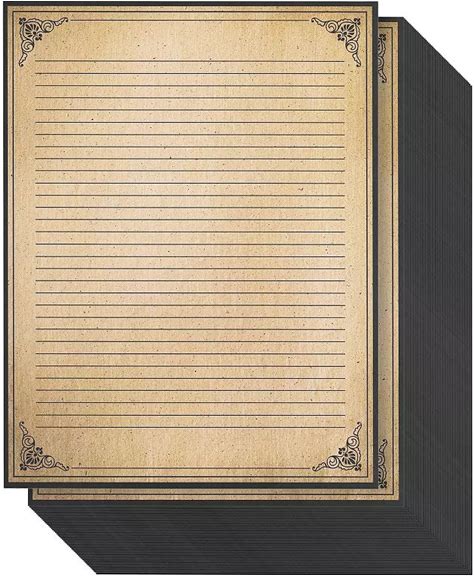 96 Sheets Vintage Lined Paper With Antique Border For Writing Letters, 8.5 X 11", Brown