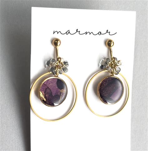 Purple Alcohol Ink Art Earrings & Clip-On Earrings With Czech Glass Beads - Handmade Resin Jewelry | Handmade In Japan |