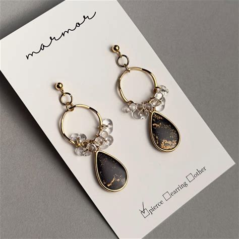 Black Alcohol Ink Art Earrings & Clip-On Earrings With Czech Glass Beads - Handmade Resin Jewelry | Handmade In Japan |