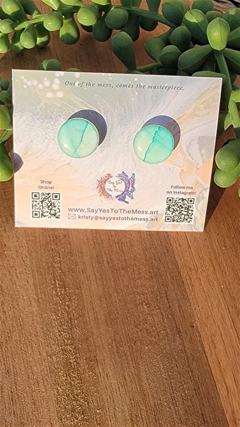 Green And Blue Alcohol Ink Resin Stud Earrings Handmade
