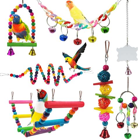 Xloey Parakeet Toys,7 Pcs Colorful Bird Toys For Parakeets,Pet Bird Cage Hammock Swing Climbing Ladders Chewing Toy Mirror Hanging Bell Wooden Perch - Pet Supplies Online Store