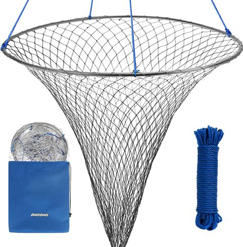 Drop Net For Pier Fishing, Bridge And Pier Net For Fishing Saltwater, 32" Diameter Soft Steel Hoop Material, Nylon Mesh For Easy Storage