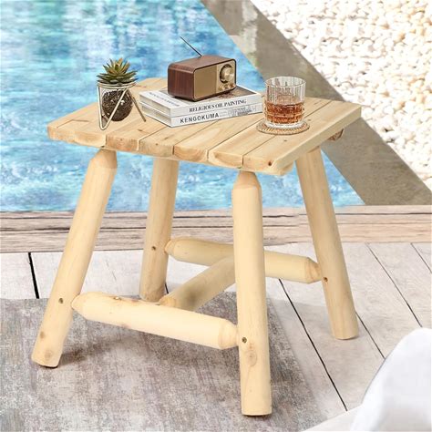 HOMEDIARY Wooden Outdoor Log Coffeetable, Cedar Wood Adirondack Square End Table, 19.5" Indoor & Outdoor Patio Side Coffee Table For Garden, Patio,