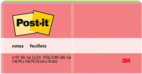 Post-It 3m Original Pads In Poptimistic Collection Colors, Note Ruled, 3" X 3", 100 Sheets/Pad, 6 Pads/Pack