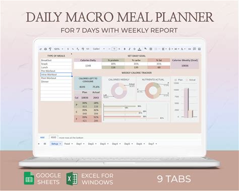 Healthy Diet Meal Planner Macro Counter Excel Sheet Macronutrient Tracker Google Sheets Template Digital Macro Calculator For Meal Planning