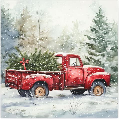 Vintage Red Truck Christmas Tree Sign - Farmhouse Holiday Wall Decor, Canvas Or Metal Print