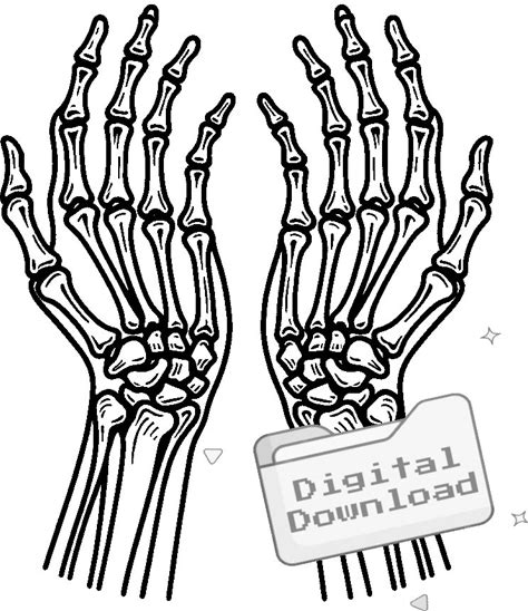 Skeleton Hand Drawings In Black And White: Universal Motifs For Creative Design (Direct And Digital Download) (PNG/SVG 3000X3000px)