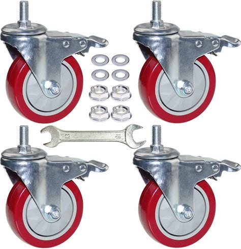 DICASAL 4 Inch Heavy Duty Stem Casters 360 Degree Swivel Thread Wheels With Metric Size M12-1.75 Screw Bolt Double Locking Brake Castor Wheel Load