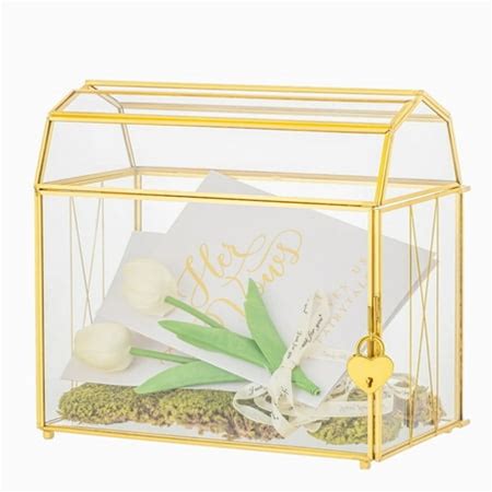 Personalized Gold Glass Wedding Card Box: Cards and Well Wishes