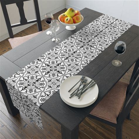 Monochromatic Mandala Patterns Table Runner (Cotton, Poly)