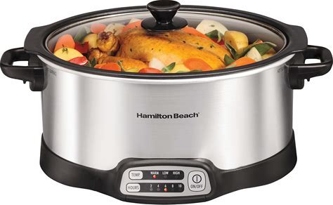 Hamilton Beach 33662 Programmable Slow Cooker With 6 Quart Stovetop-Safe Sear & Cook Crock, Silver