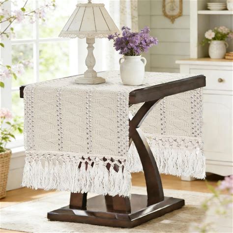Socomi Boho Table Runner Valentine's Day Farmhouse Rustic Dining Kitchen Decor Small Macrame Woven Cotton Linen Coffee Table Runner For Dresser Scarf